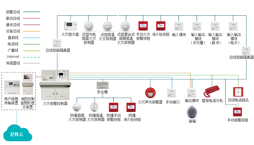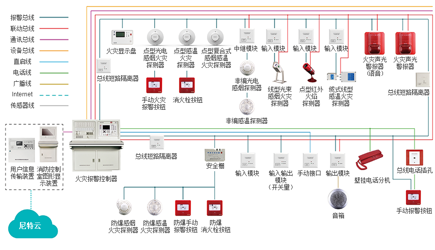 尼特火災自動報警系統分為“二線制”解決方案和“四線制”解決方案