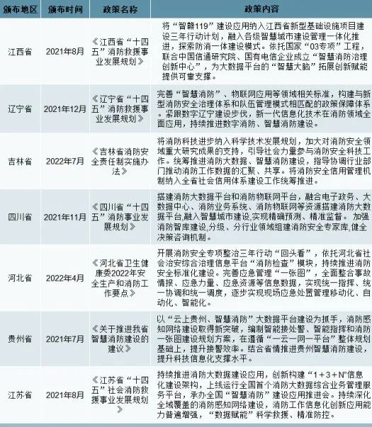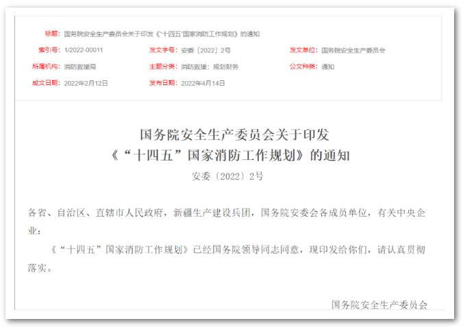 國(guó)務(wù)院安全生產(chǎn)委員會(huì)發(fā)布了關(guān)于印發(fā)《“十四五”國(guó)家安全生產(chǎn)規(guī)劃》的通知,關(guān)于消防行業(yè)的發(fā)展其中提及到:推動(dòng)建立基層消防網(wǎng)格化信息管理平臺(tái),建設(shè)消防物聯(lián)網(wǎng)監(jiān)控系統(tǒng)和城市消防大數(shù)據(jù)庫。