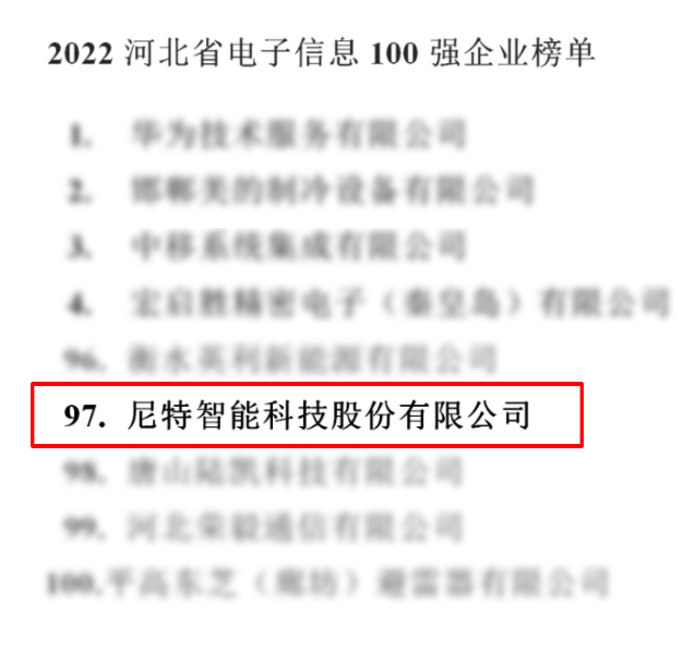 電子信息競爭力百強企業榜單是以2021年報主營業務收入作為主要依據,依托主營收入、市場占有率、研發創新能力、品牌影響力、企業社會責任等指標考核企業綜合競爭力。尼特憑借卓越的綜合實力和創新能力榮登榜單,是政府及社會各界對尼特品牌的高度肯定,同時也是尼特堅持科技研發投入、堅持高質量發展的體現,為尼特的長遠發展增添了動力。