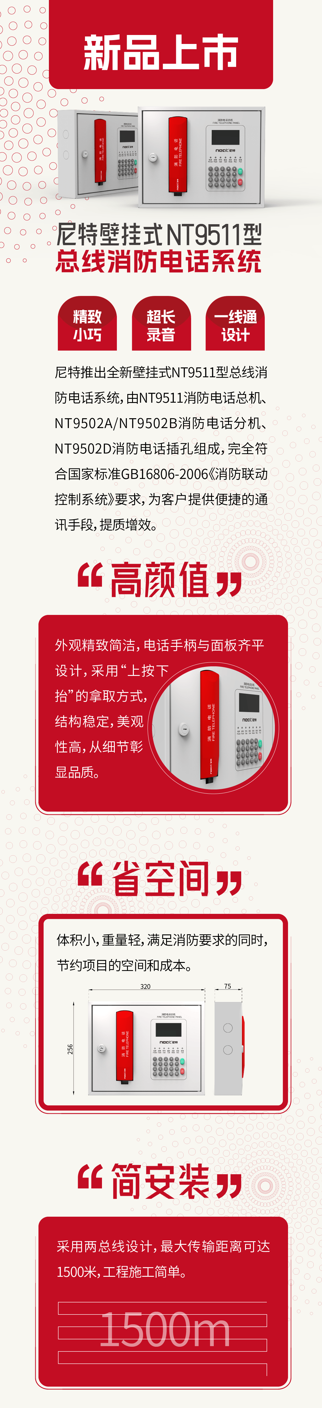 新品上市丨尼特壁掛式NT9511型總線消防電話系統來啦!