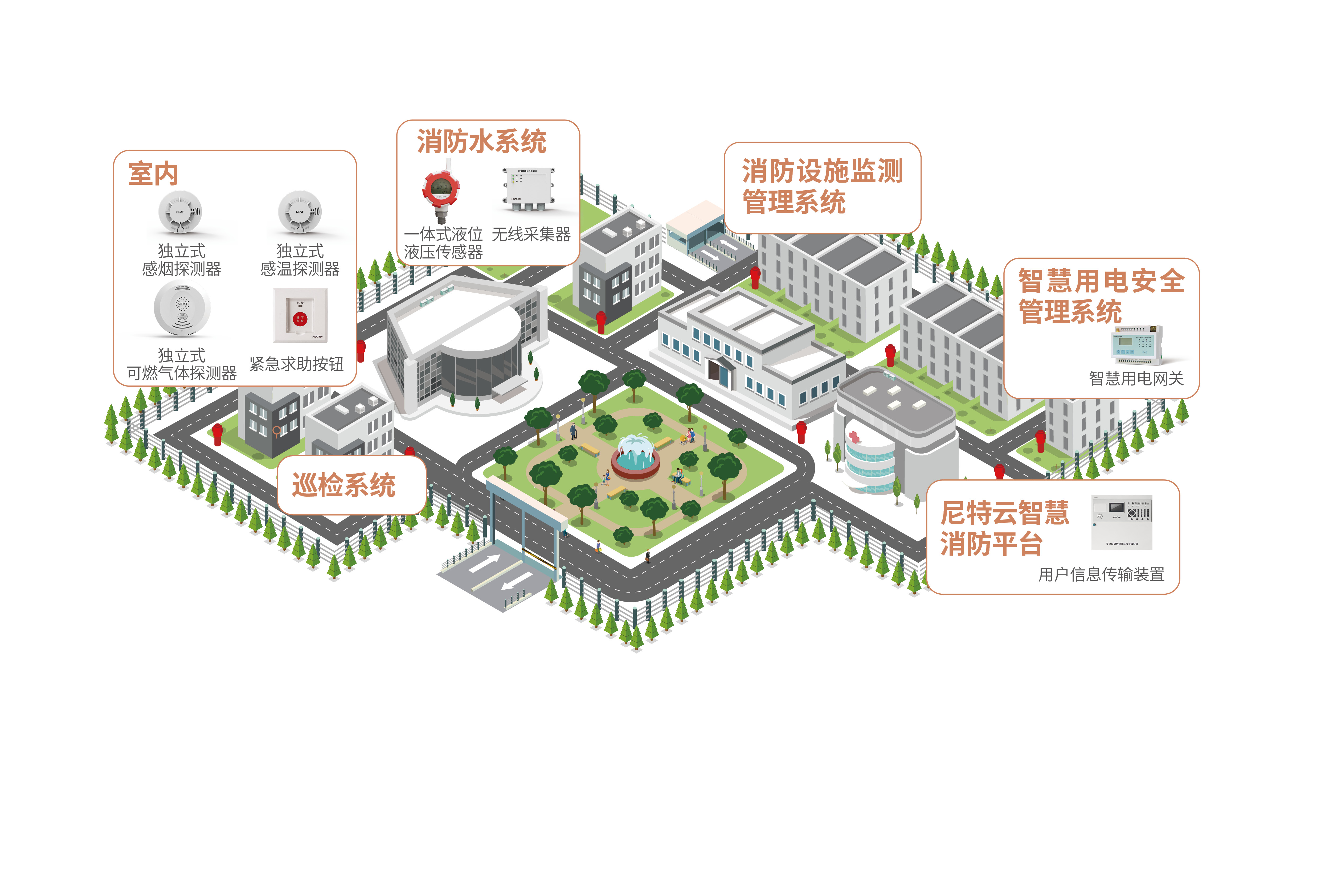 針對長沙市雨花區養老機構點多面廣、基礎條件參差不齊、設施陳舊安全隱患多、統一監管難等諸多實際問題,考慮到養老機構弱勢群體集中,容易造成群死群傷事件的實際情況,尼特智慧消防解決方案充分利用新興技術手段,實時在線監測養老機構重點部位及設施的運行狀態,對機構安全工作數據進行查詢、統計、分析,改變了過去靠人單一監管模式,采取“線上技防、線下人防”的“雙防”綜合監管舉措,為雨花區養老機構搭建了智慧消防監管一張網。當發現消防隱患時,平臺自動向機構、鎮街、民政部門責任人發送預警電話和短信,實現“實時化、信息化、智慧化、安全化”管理新舉措,做到防患于未然。