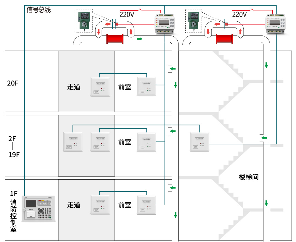根據防煙樓梯或前室與消防通道間的實際情況,尼特免接管型消防應急疏散余壓探測系統方案可以靈活安裝余壓探測器,在前室已全部安裝探測器的情況下,樓梯間為上下聯通的空間時,可以每隔一層安裝一個探測器,節省了余壓探測器與相關設備的采購成本,滿足客戶多樣化、個性化的項目安裝需求。