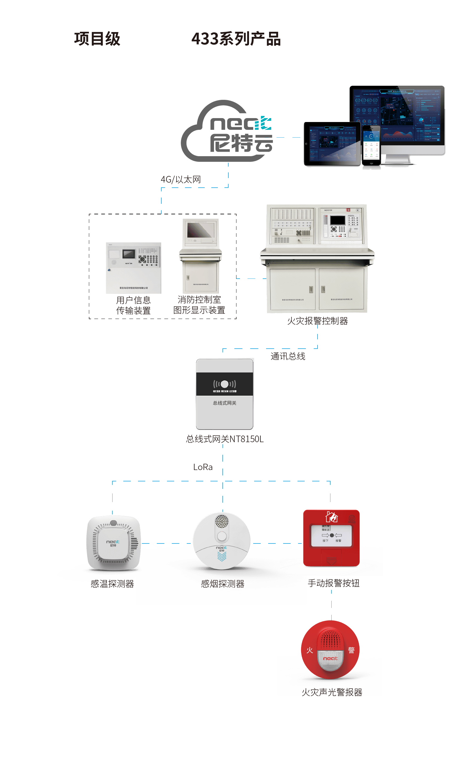 作為國內領先的物聯網消防企業,尼特擁有完備的產業園區智慧消防解決方案,根據寧波市相關政策與奉化區“園中園”“廠中廠”消防安全系統改造的實際需求,尼特基于LoRa技術中長距離通訊、低功耗以及組網節點數量多的特點,對于廠區、園區在設計初期沒有進行消防規劃、沒有安裝火災自動報警系統的臨時搭建場所提供了集中控制型無線火災報警系統,對“園中園”“廠中廠”消防安全系統進行合理的優化、靈活部署設備。