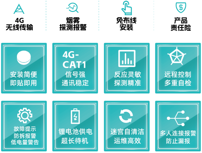 本次解決方案,應用的是尼特智慧消防無線聯網型NT8117獨立式感煙火災探測報警器,采用行業領先的4G Cat.1技術,內置全網通通訊模組,在4G基站覆蓋范圍內,均可實現高數據量承載,產品在線率高,當探測到火災發生,它會自動發出警報提示險情,并支持電話、短信、APP、網頁等多重預警方式,為撲救火災、疏散逃生爭取更充足的時間。