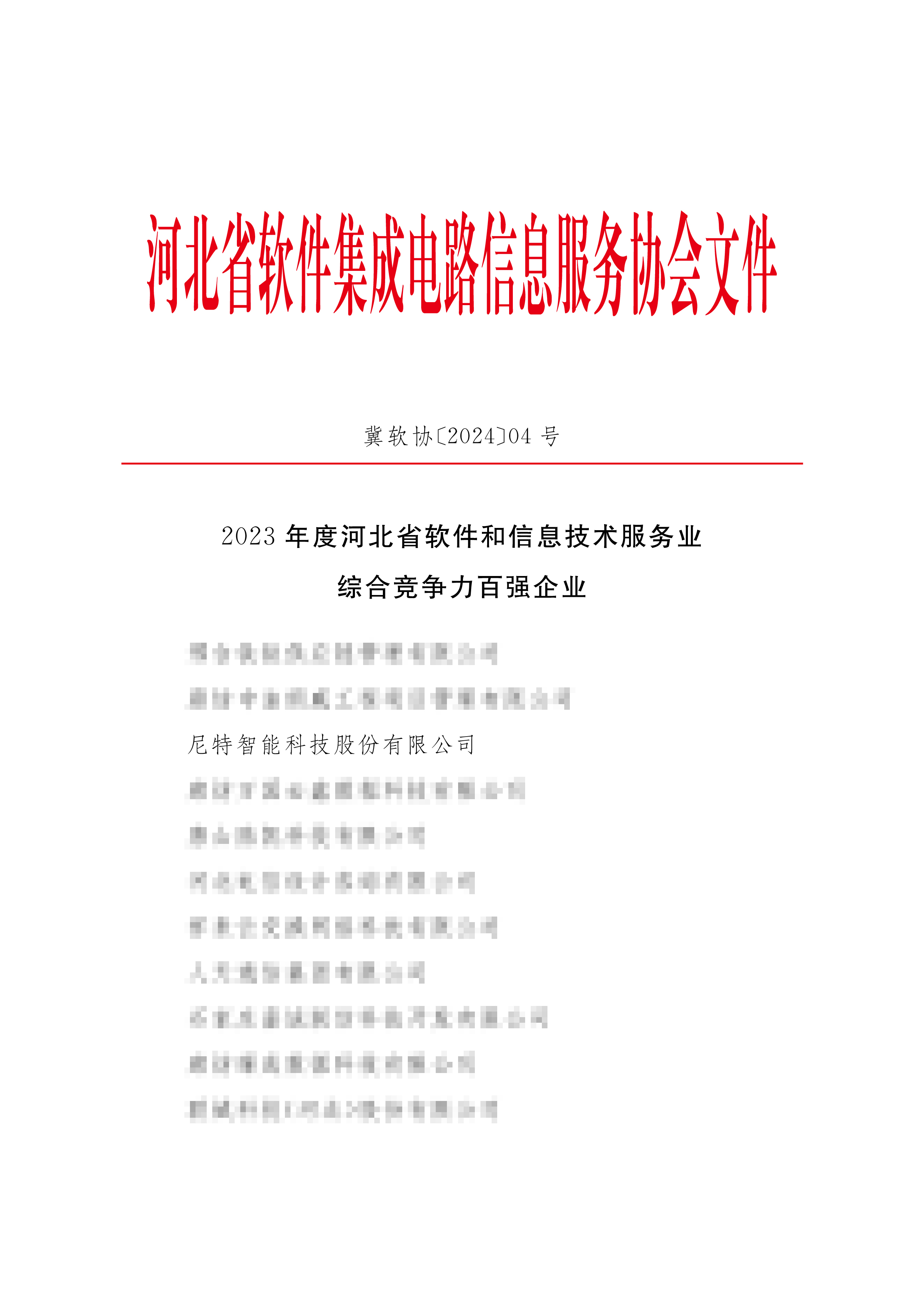 此次評選,旨在科學反映軟件和信息服務相關企業的運行情況與競爭力水平,推動軟件和信息技術服務業高質量發展。獲評“河北省軟件和信息技術服務業綜合競爭力百強企業”,是行業對尼特智能軟件研發實力、科技創新能力、信息技術服務水平的充分肯定。