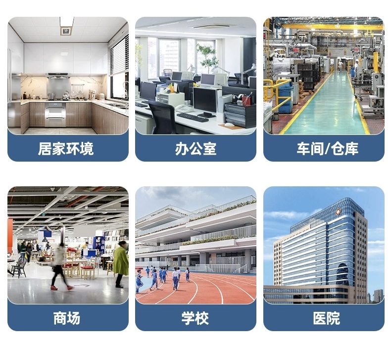 除“三小”場所外,可廣泛應用于家庭住宅、工業廠房、寫字樓、倉庫、商場、賓館、圖書館、教學樓、銀行等密集型場所。