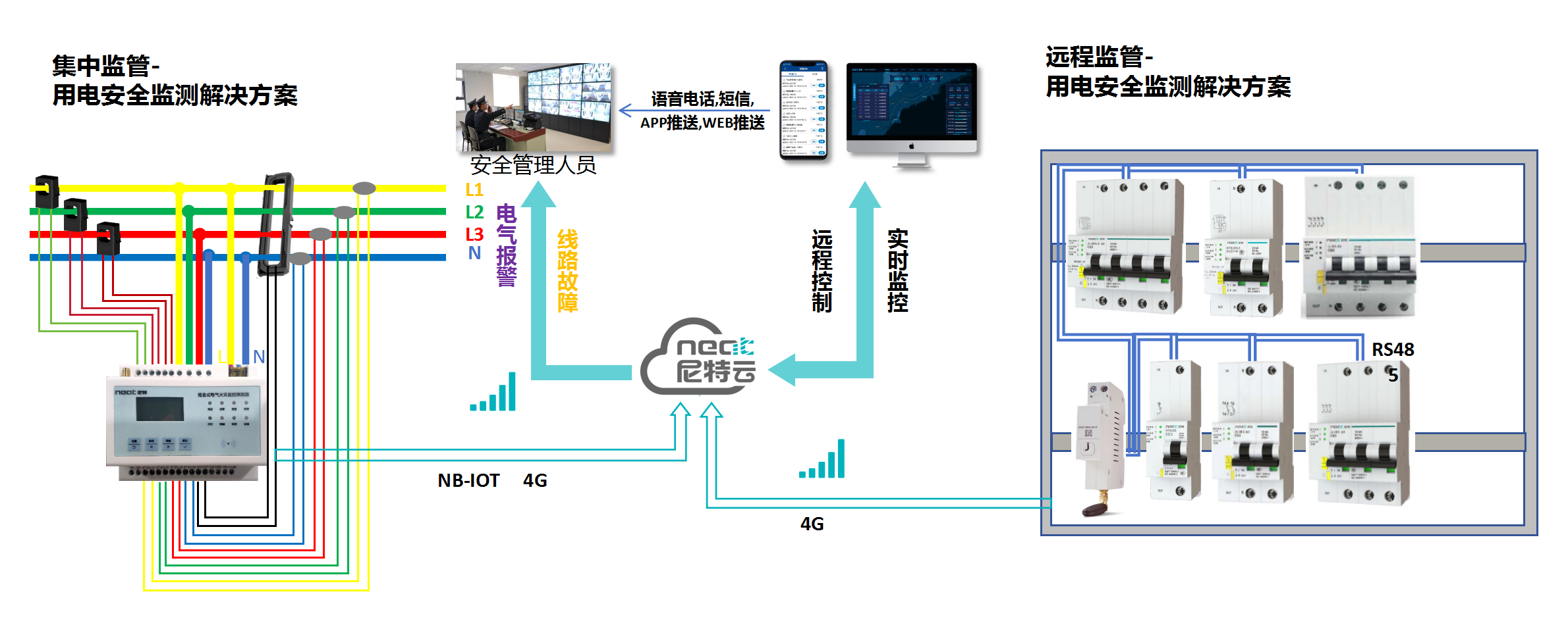 針對當前電氣火災頻發的問題,尼特智能提出了一套以“硬件+軟件+平臺+服務”為核心的解決方案。該方案充分利用大數據、物聯網等先進技術,根據不同用電場景設計了兩種電氣火災監控系統,旨在實現對線路狀態的實時監測與精準管理。