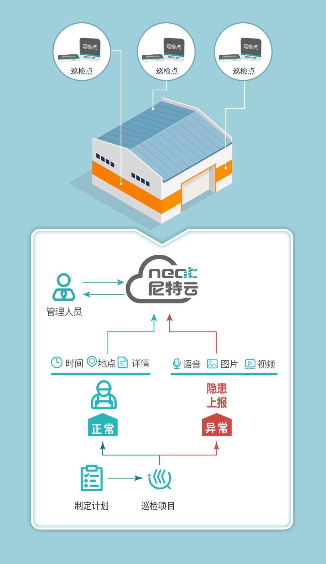 通過NFC技術(shù),在倉庫消防重點部位布設(shè)電子巡查碼,巡檢人員通過“一物一碼”快速定位設(shè)備,實現(xiàn)設(shè)備管理的智能化、快捷化,告別低效巡檢,云平臺數(shù)據(jù)實時同步,責(zé)任劃分清晰且便于管理。