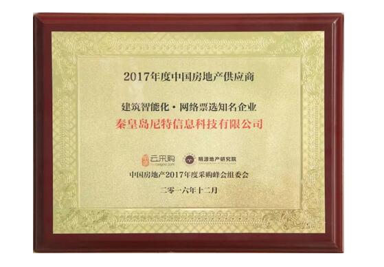 日前,由中國房地產(chǎn)行業(yè)采購招投標(biāo)權(quán)威平臺明源云采購,攜手全經(jīng)聯(lián)、明源地產(chǎn)研究院舉辦的中國房地產(chǎn)行業(yè)優(yōu)秀供應(yīng)商評選揭曉。尼特從國內(nèi)外眾多企業(yè)中脫穎而出,榮獲2017年度中國房地產(chǎn)供應(yīng)商“建筑智能化知名企業(yè)”稱號,并收獲了眾多開發(fā)商和專家組的一致好評。