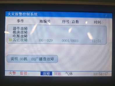 火災報警控制器報廣播盤故障 |