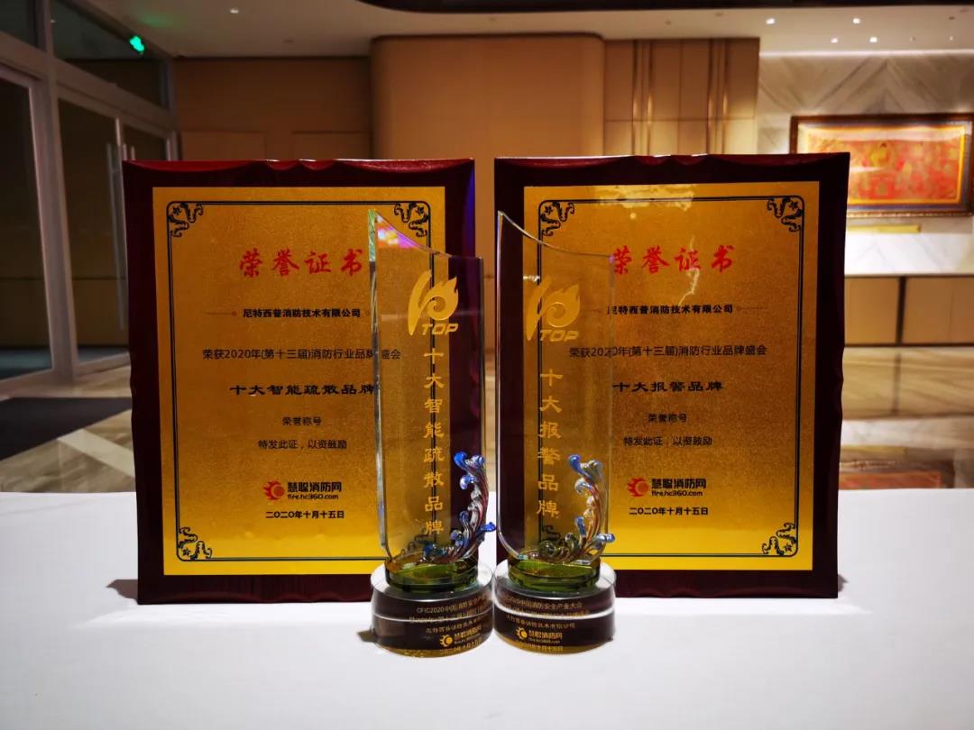 “十大智能疏散品牌”“十大報(bào)警品牌”證書獎(jiǎng)杯