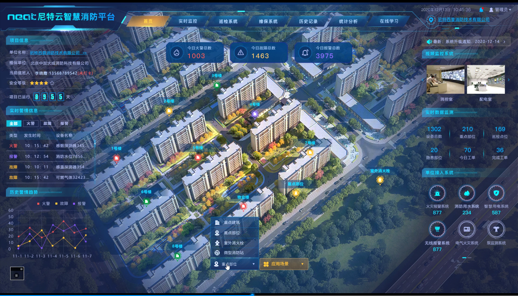 為協助物業單位加速實現“創建美好生活”的發展目標,尼特實現了高低壓配電房、發電機房、生活水泵房、消防水泵房、消防穩壓泵房、排水系統、電梯、消防監控室等多個社區場景下的智慧消防產品應用,構建了全覆蓋、全時段、全可視的火災防控體系,有效降低物業單位人力巡檢壓力、應急設施投入與風險事故帶來的損失。
