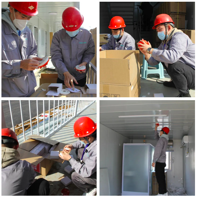 秦皇島方艙醫(yī)院總建筑面積1.7萬平方米,規(guī)劃隔離用房568間,后勤保障房14棟。為全力保障消防設(shè)備能夠快速投入使用,尼特制定了全面的人員保障計劃,明確了項目施工方案,積極馳援抗疫一線,在做好技術(shù)安裝、調(diào)試人員自身安全防控的前提下,加緊服務(wù)工期,為方艙醫(yī)院安全建設(shè)工作提供了安全的保障。