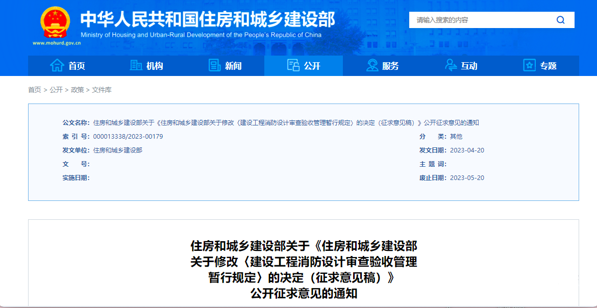為了改進建設工程消防設計審查驗收管理,住房和城鄉建設部擬修改《建設工程消防設計審查驗收管理暫行規定》,起草了《住房和城鄉建設部關于修改〈建設工程消防設計審查驗收管理暫行規定〉...