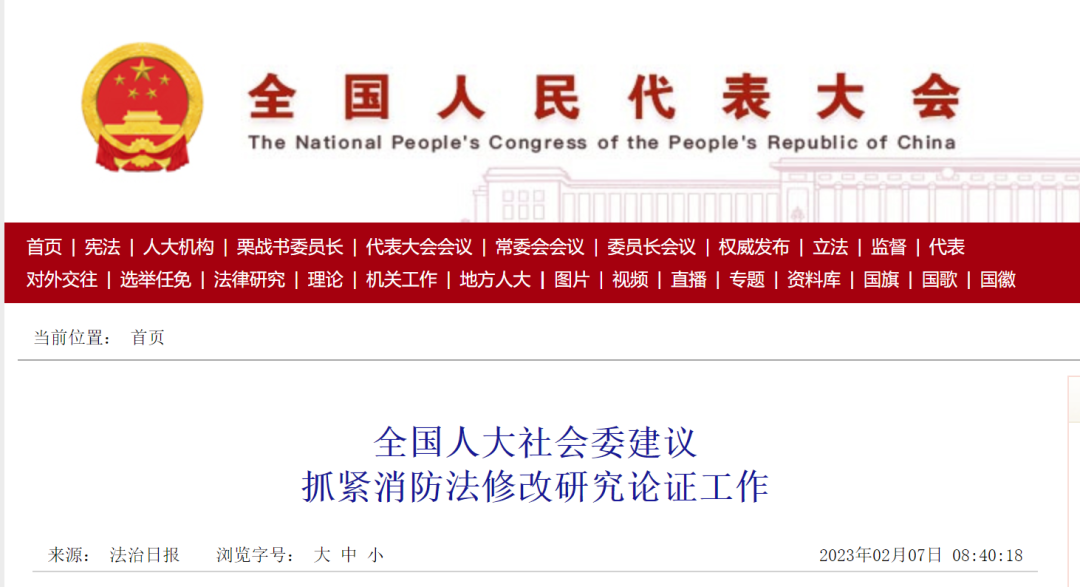 近日,全國人大社會委發布公告,建議有關部門按照黨中央關于深化消防執法改革、消防救援隊伍改革的決策部署,結合落實《“十四五”國家消防工作規劃》,針對...